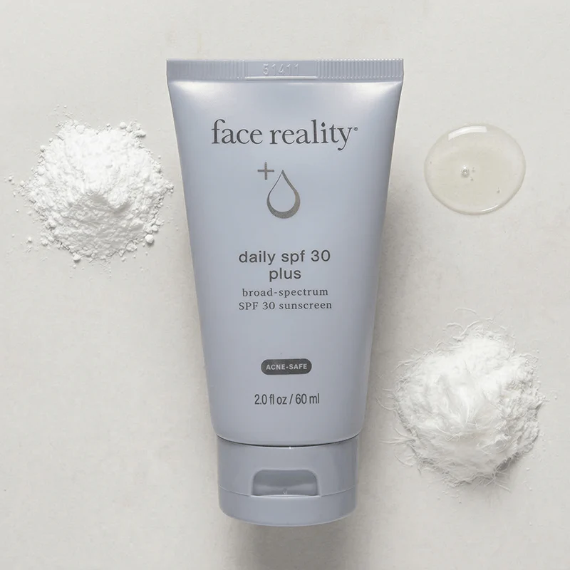 Face Reality Daily SPF 30 Plus is a newly improved broad-spectrum sunscreen designed to provide daily sun protection while supporting clearer, healthier skin. This lightweight, non-greasy formula offers the same beloved texture as the original Daily SPF 30 but is now enhanced with acne-fighting ingredients to help prevent breakouts. Ideal for acne-prone and sensitive skin, it delivers essential UV protection without clogging pores or causing irritation, ensuring a smooth, comfortable wear.