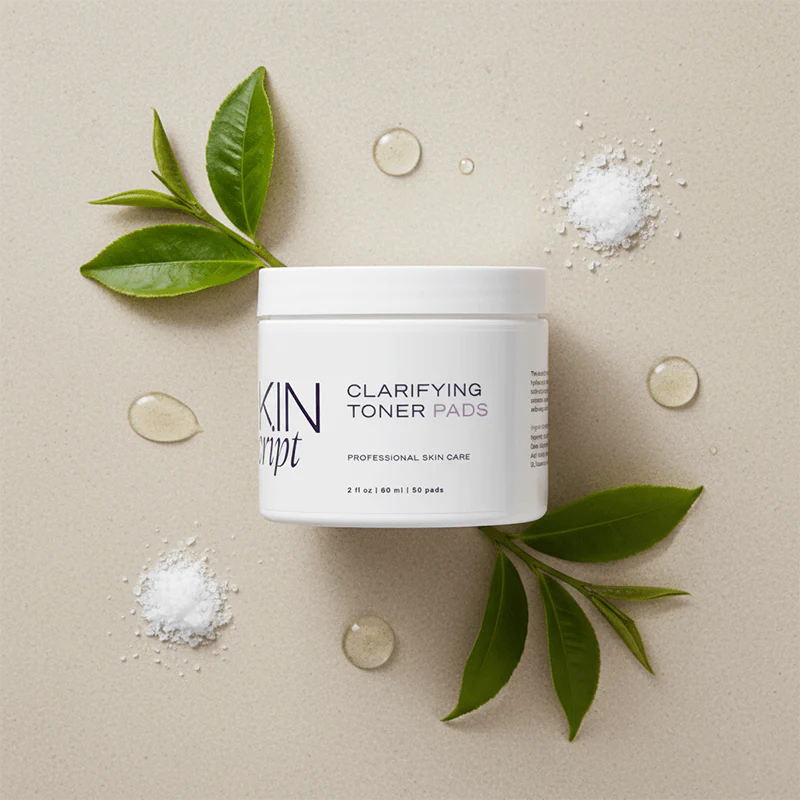 Experience the purifying prowess of our Clarifying Toner Pads, expertly formulated with potent active ingredients to alleviate breakouts while enhancing skin clarity and texture. Heal, tone, and shield against acne with Skin Script Clarifying Toner Pads. These pads not only exfoliate the skin and banish excess oil but also unclog pores and neutralize bacteria, fostering a complexion that radiates clarity and vitality. Moreover, each pad accelerates cell regeneration for added anti-aging advantages, leaving your skin rejuvenated and glowing!